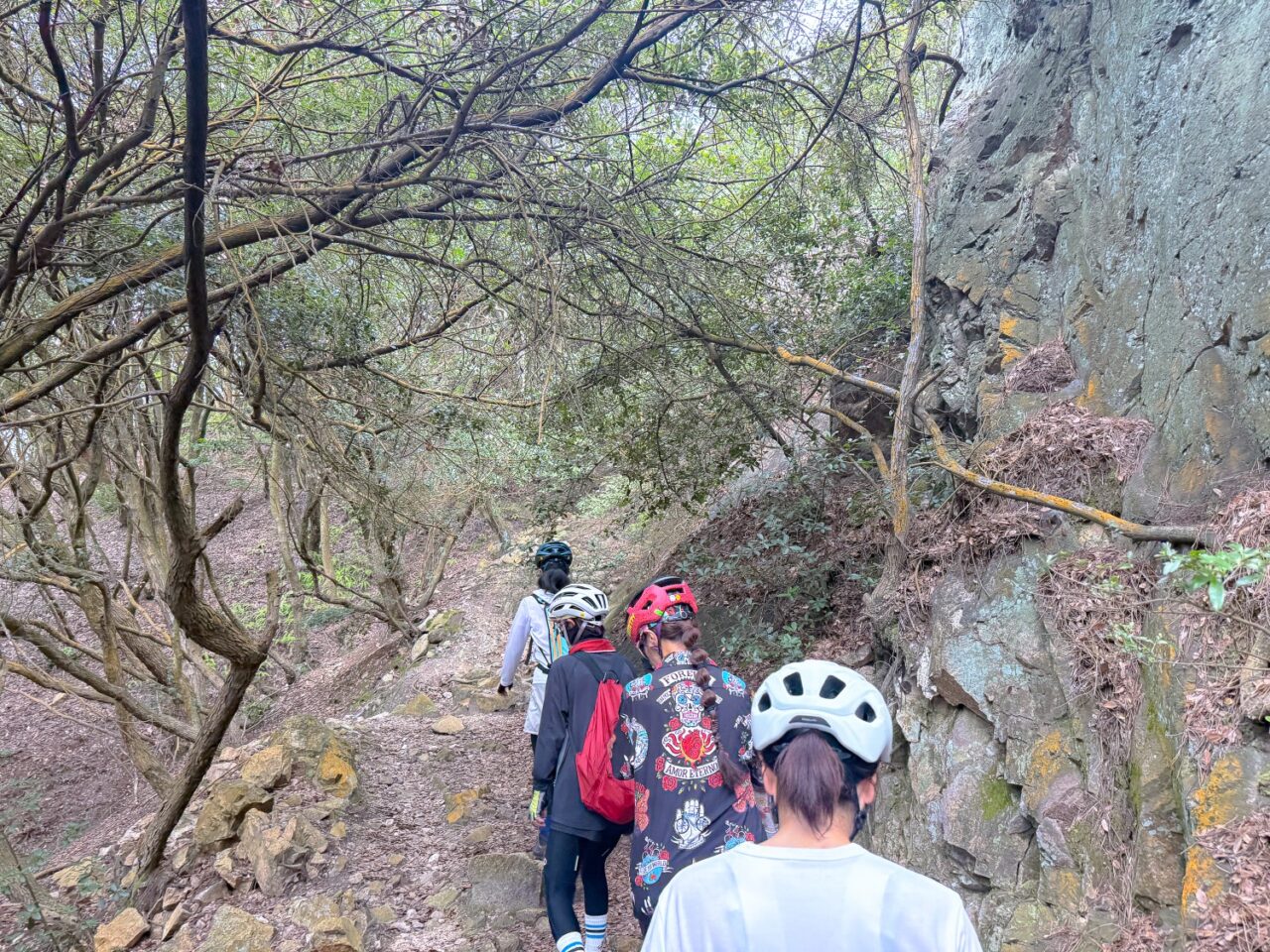 亀老山の前に、亀老山よりも傾斜が急な峠をひと登り!!お客様皆さまスイスイ登っていかれるので、スタッフは後ろからゼェゼェはぁはぁしながら必死に登りました(笑)