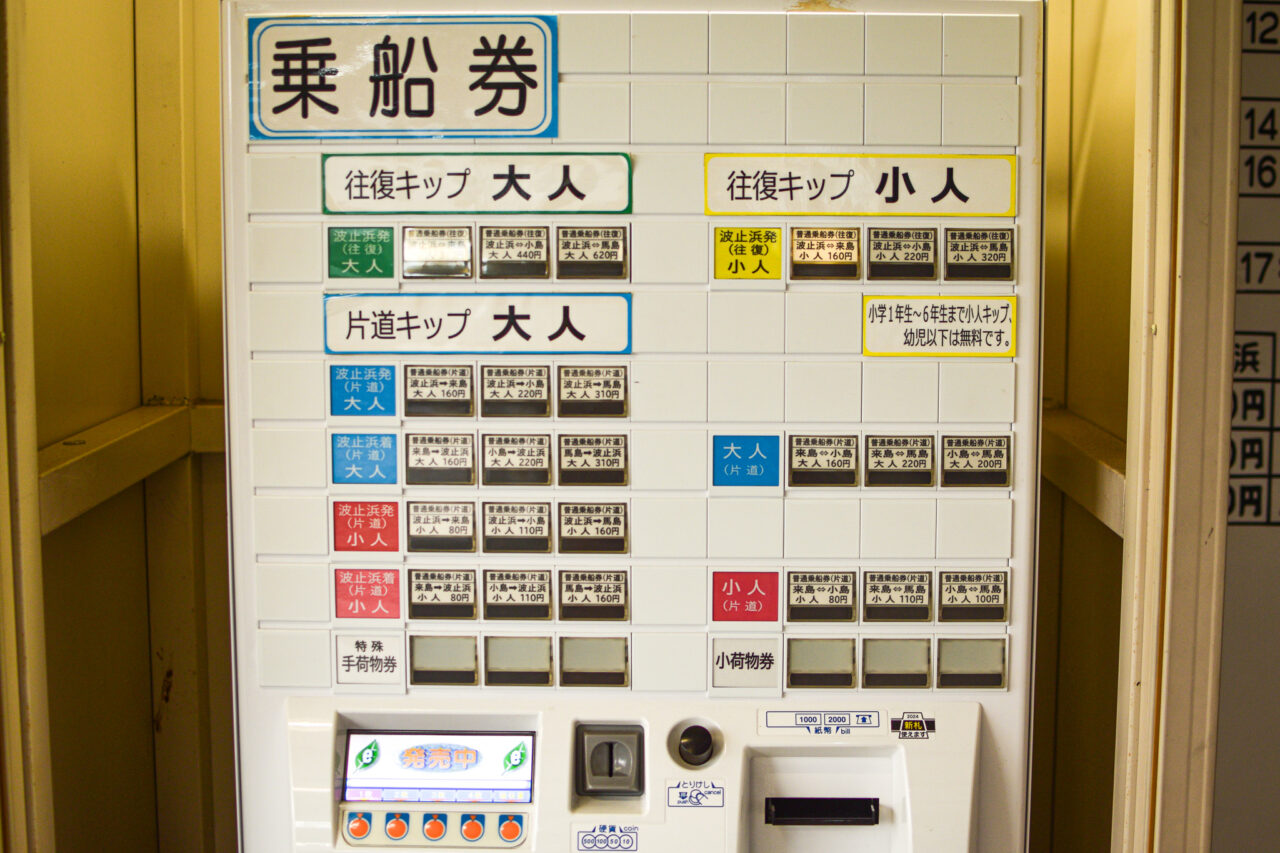 小島と馬島は定期航路で結ばれていて、波止浜港でチケットをまとめて購入してまとめて船員さんへ渡すシステムになっています。ちなみに、1日に6便程度あるので、1本乗り過ごしても安心…?です(笑)