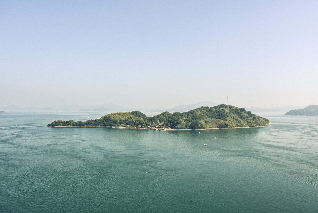 しまなみ海道の紹介文などでは「大島・伯方島・大三島・生口島・因島・向島の6つの島が橋で繋がって…」と、同じく橋で繋がっている島なんですけれども飛ばされがちな来島海峡大橋の途中にある島です。こちらも周囲約4km程の小さい有人島です。
