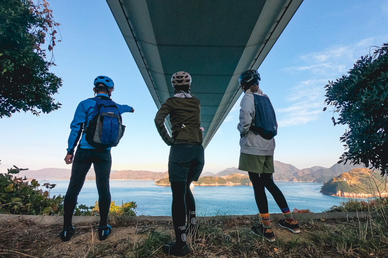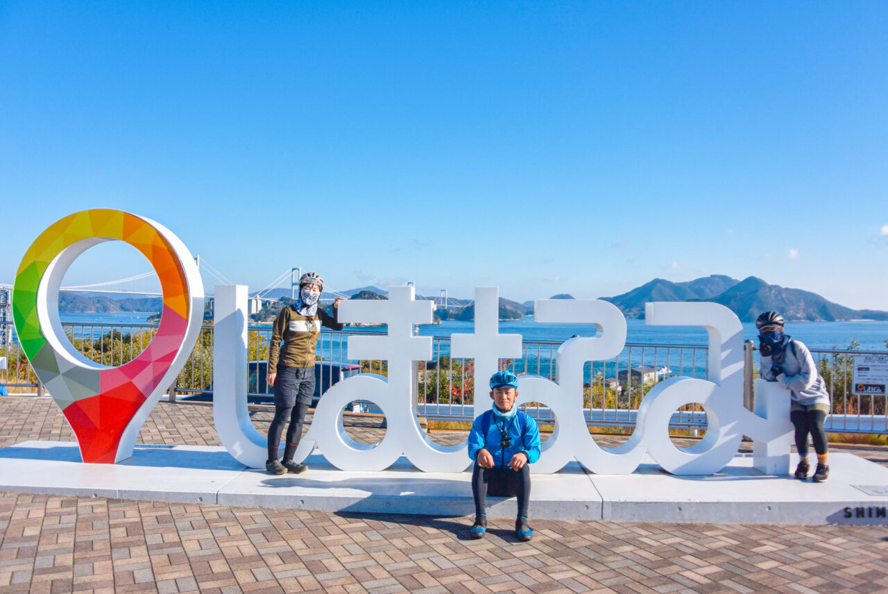 今回ご参加いただいたお客様は『初上陸』『どちらも行った事ある』『馬島はある』と経歴は様々な模様!!まずは定番のSHIMANAMIオブジェと記念撮影して出発です!