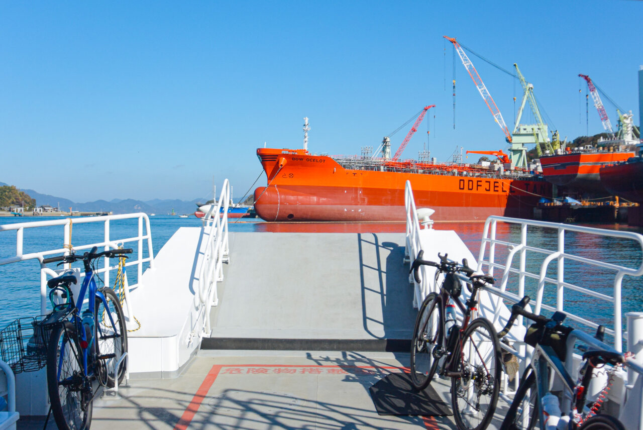 建造中の船を眺めたりなどしている内に、船の時間が近づいてきたので、一路波止浜港へ。