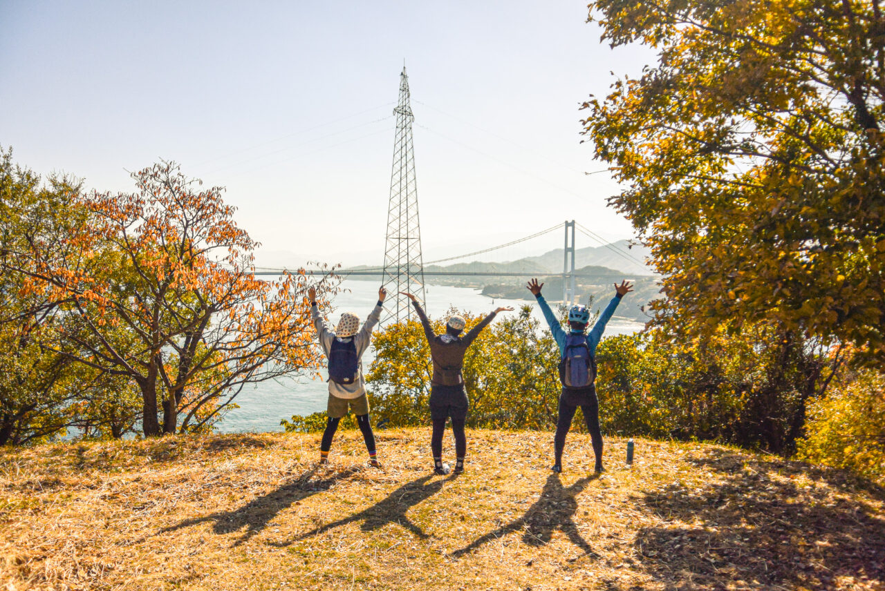 まだまだ元気が有り余っている皆様を連れて最後は大島の火内鼻へ!来島海峡大橋と夕日が同時に楽しめる秘密のスポットです^^
