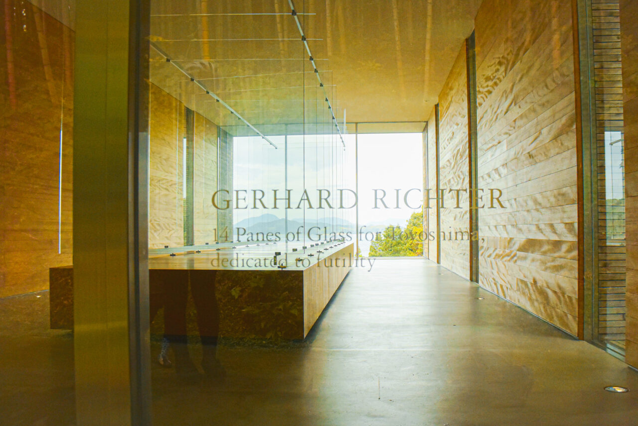 それは14枚のガラスの原題「14 Panes of Glass for Toyoshima, dedicated to futility」にヒントがあるそうで、「dedicated to futility(無用なものに捧げる)」と入っており、「誰の役に立つこともなく、観に訪れる人がいなくてもアートはここに存在する。その絶対的な強さを、この建物と作品は体現している」と語っているそうです。